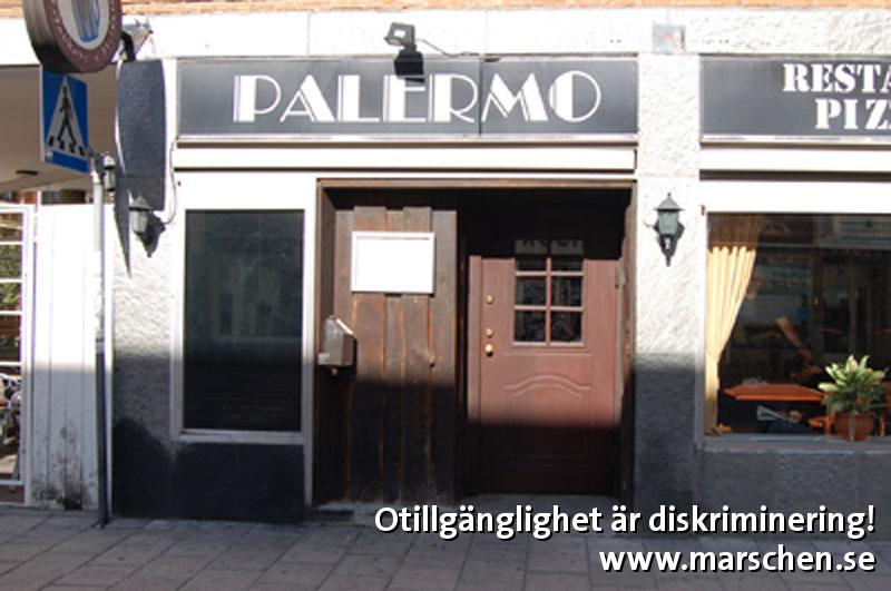 Hög kant till entrén utestänger personer som sitter i rullstol från att komma in i restaurangen. Läs hela anmälan om Palermo Restaurang & Bar …