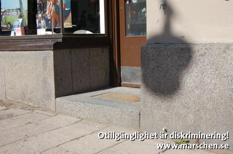 Trappsteg i ingången utestänger och diskriminerar därmed kunder som använder rullstol.