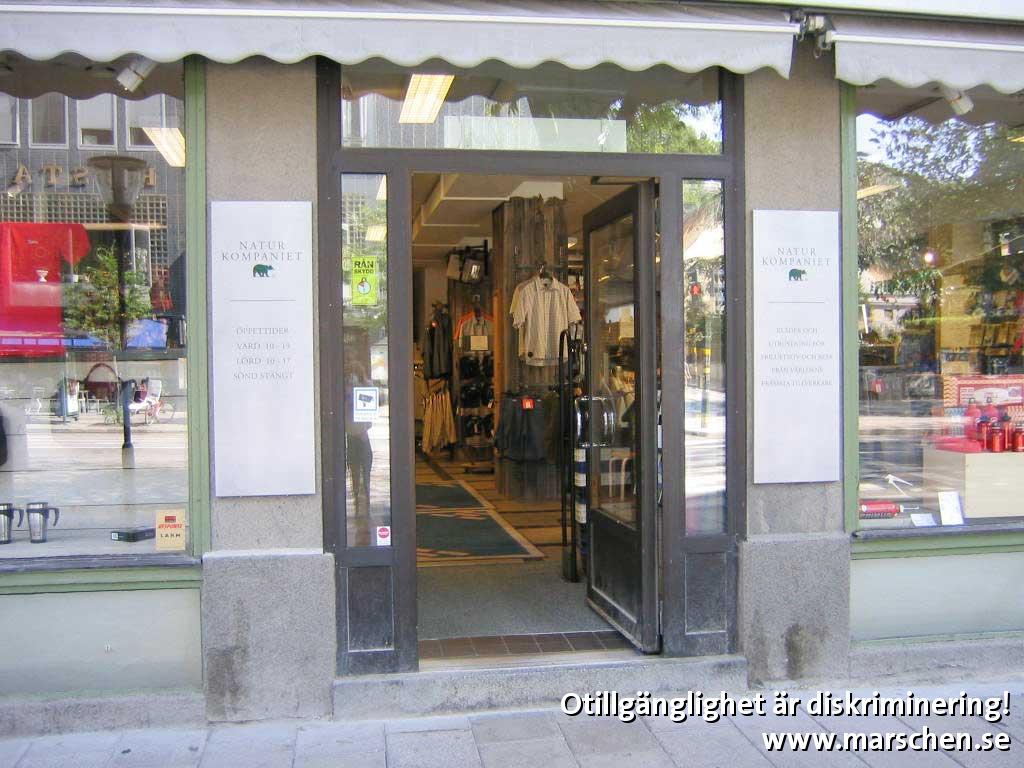 Ett högt trappsteg gjorde att jag inte kom in i butiken, då jag använder rullstol.