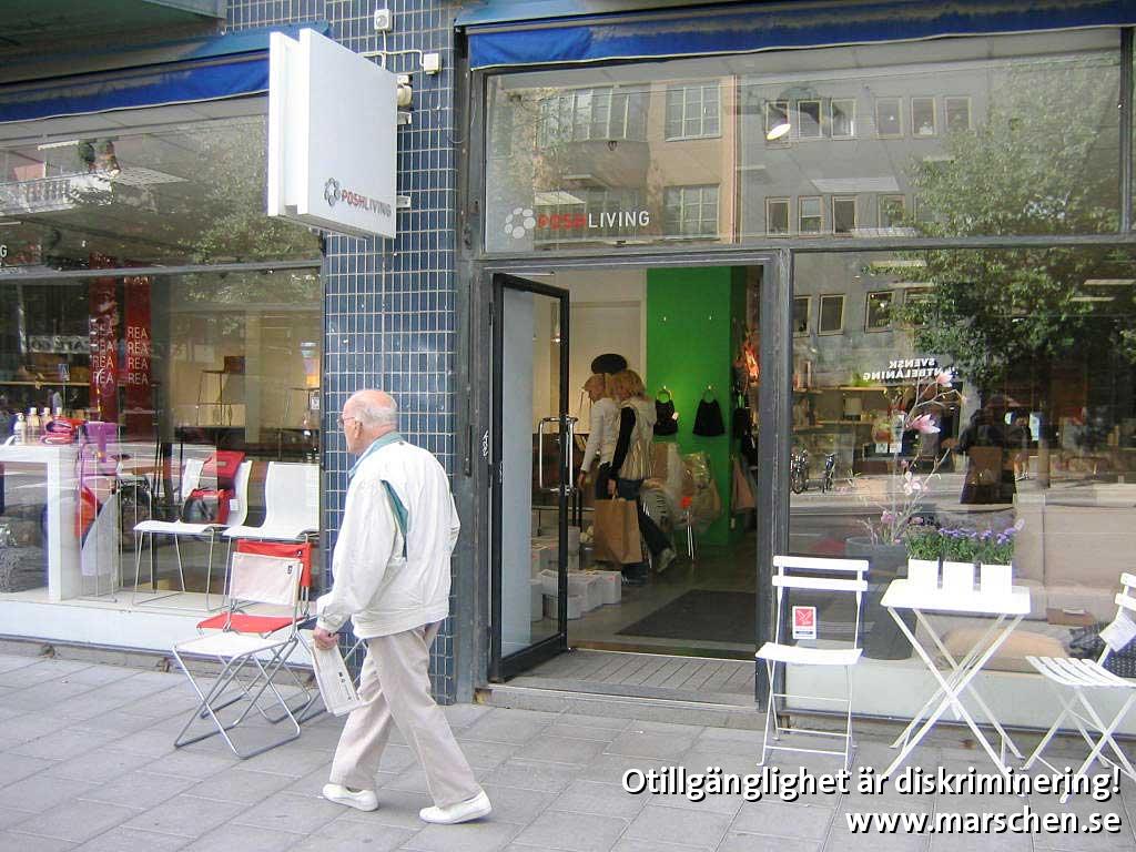 För högt insteg till lokalen vilket utestänger och därmed diskriminerar personer med funktionshinder.