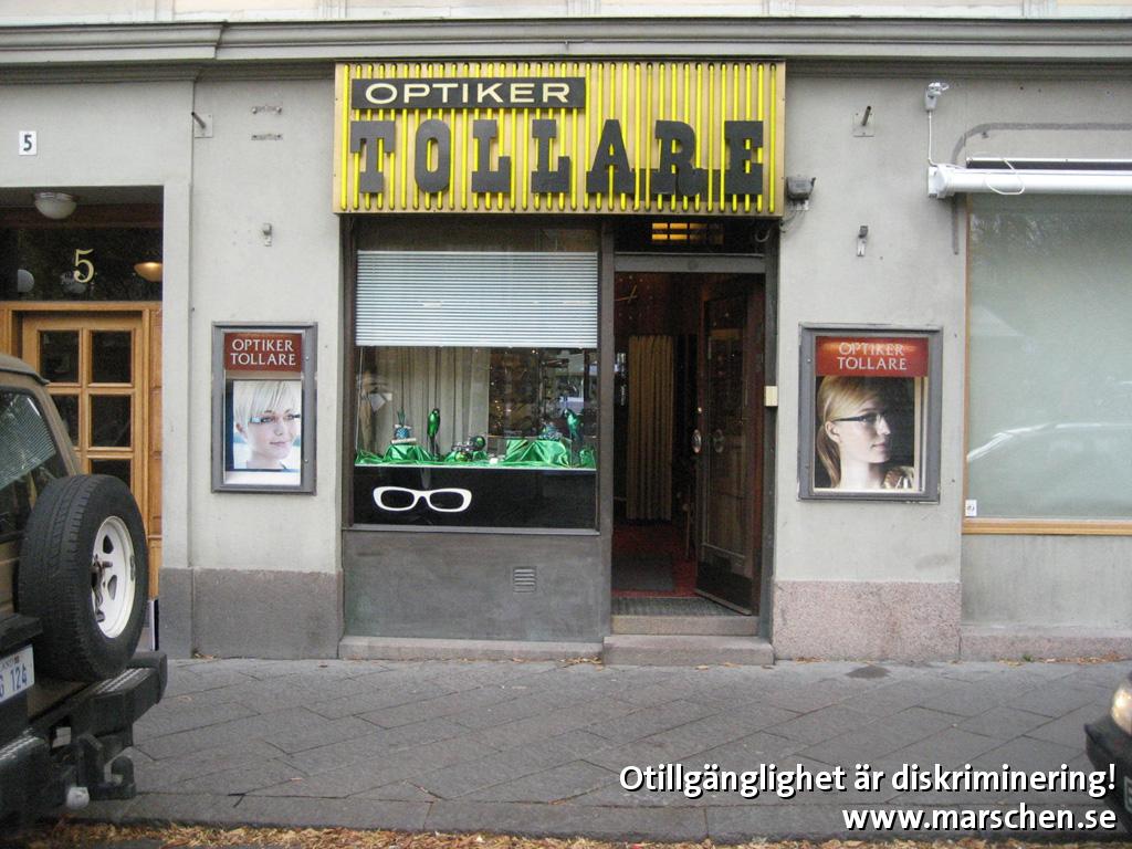 2 trappsteg till entrén utestänger och diskriminerar därmed kunder som använder rullstol. Läs hela anmälan om Optiker Tollare …