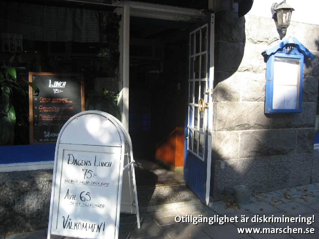 Trappor för att komma in på fiket utestänger personer som använder rullstol.