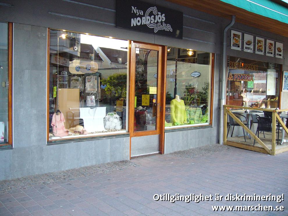 Hög tröskel stoppar kunder i rullstol eller med rollator. (Uppföljning 2010-11-21) Läs hela anmälan om Nya Nordsjö Garn …