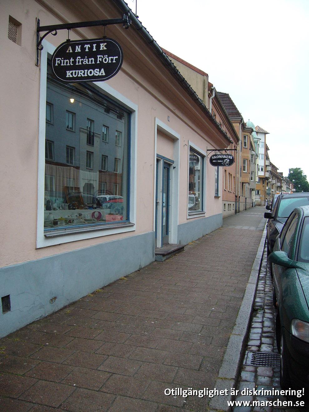 Ett trappsteg ute och tre inne stoppar person i rullstol eller med rollator. Detta är diskriminerande!