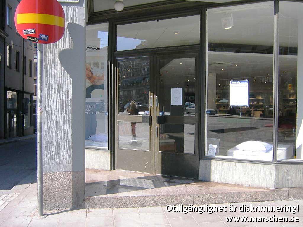 Ett högt trappsteg gjorde att jag inte kom in i butiken, då jag använder rullstol.