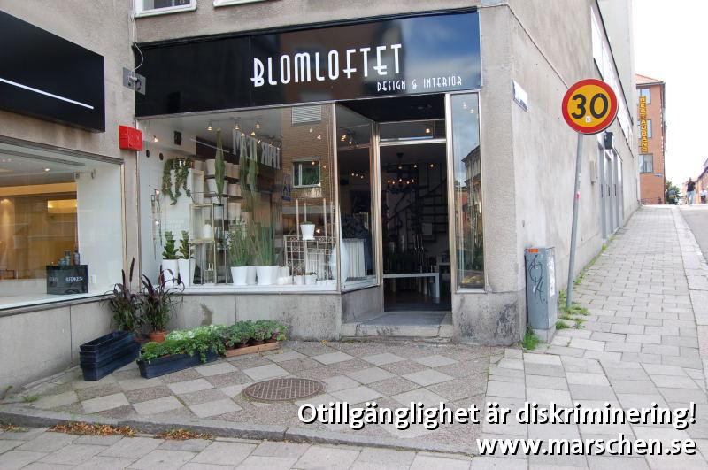 Trappsteg i ingången utestänger och diskriminerar därmed kunder som använder rullstol.