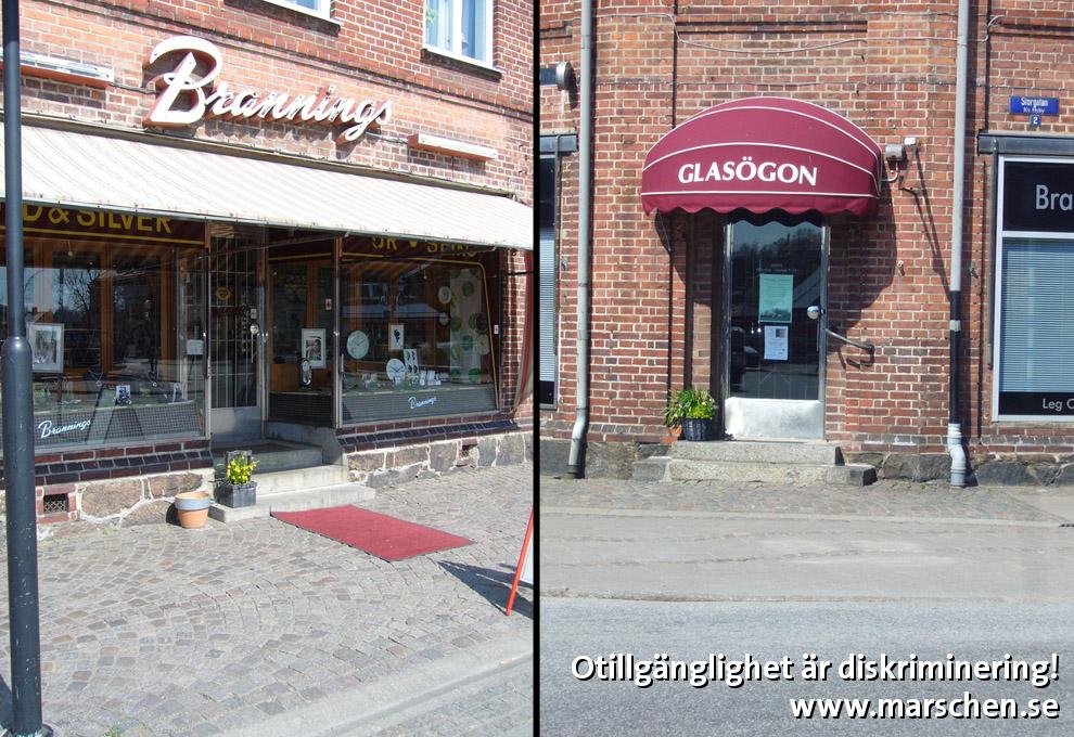 Lokalen har anmälts tidigare, redan 2005-08-11: http://www.independentliving.org/anmalningstjansten/diskriminering_brannings_optik_gamla_torg__horby_2005-08-11.html På fyra år har alltså inget hänt!