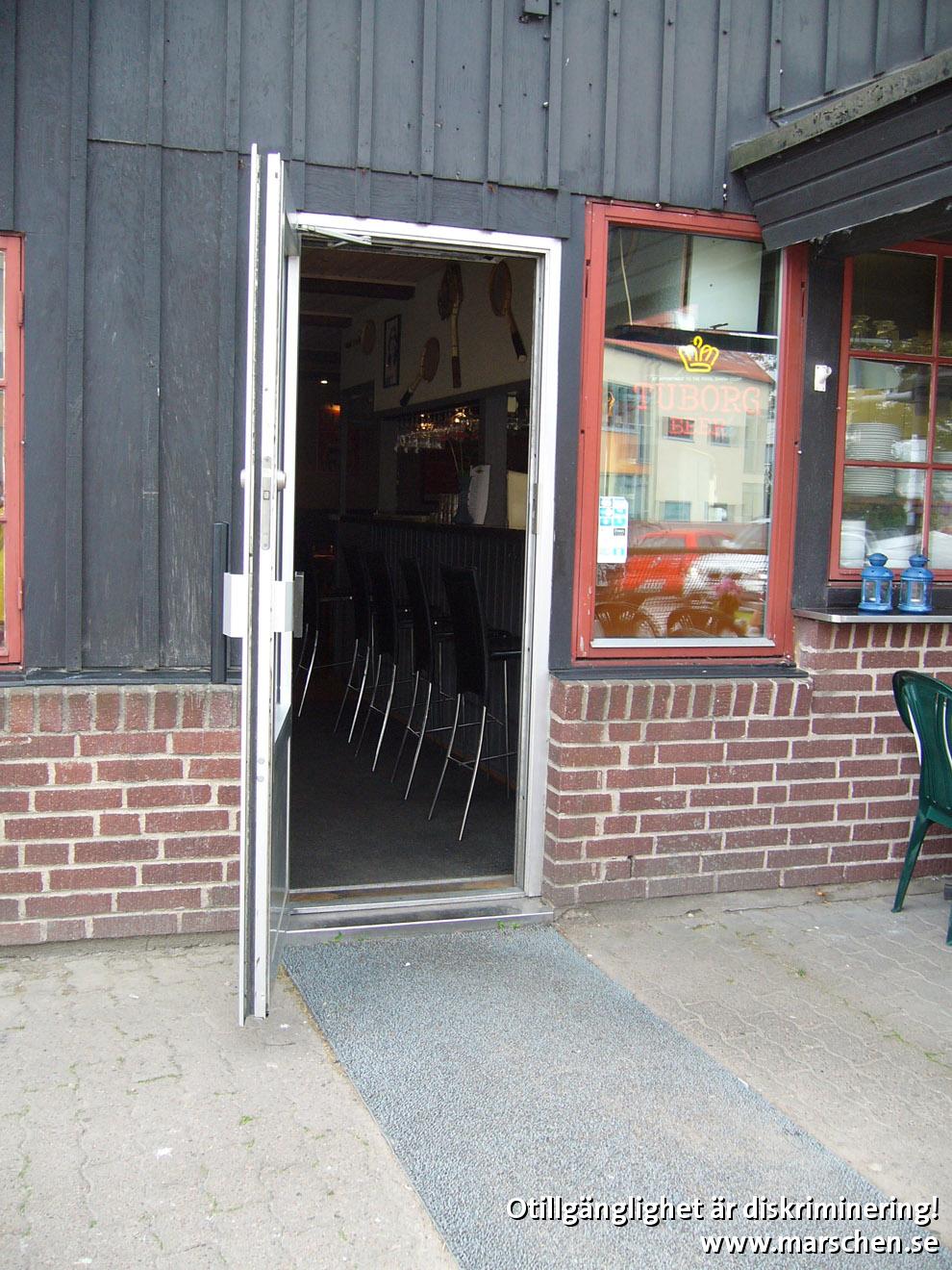 7 cm hög kant stoppar person i rullstol från att komma in.