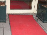 Numera har de satt dit en ramp/avfasning vid befintlig entré (se bild). Det hjälper inte ett smack, då man som rörelsehindrade måste gå in och påkalla personalens uppmärksamhet, åka ut genom entrén och åka en omväg på cirka 40 - 50 meter runt hörnet. Detta eftersom att det fortfarande finns trappsteg invändigt vid denna entré.