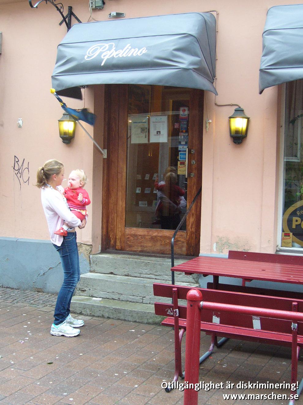 Lokalen har anmälts tidigare, redan 2005: http://www.independentliving.org/anmalningstjansten/diskriminering_pepelino_storg_angelholm_2005-08-13.html På fyra år har alltså inget hänt!