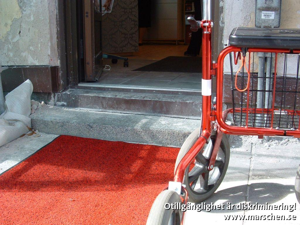 Två steg i ingången utestänger och diskriminerar därmed kunder som använder rullstol.