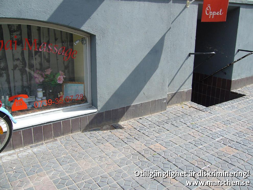Trappseg ner i entrén stoppar kund i rullstol eller med rollator.