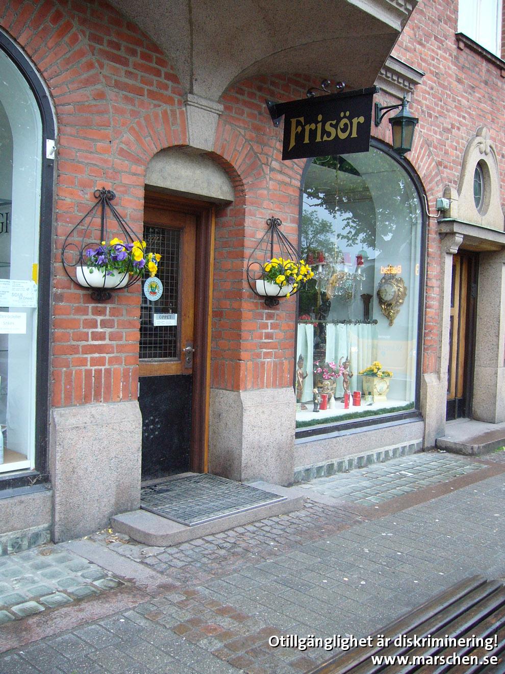 3 trappsteg i entrén stoppar kunder i rullstol eller med rollator. Kontrastmarkering och ledstänger saknas för synskadade. (Uppföljning 2010-11-21) Läs hela anmälan om Sigga’s Salong …