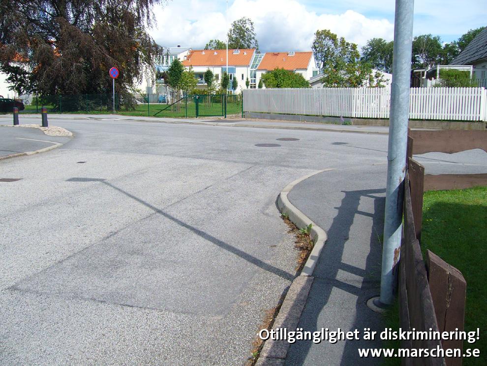 Vid många gatukorsningar saknas övergångsställen med upp till 10 cm höga trottoarkanter. Dåligt utformade övergångsställen utan 0-kantsdel stoppar personer i rullstol eller med rollator. Utan kontrastmarkeringar, sebraränder och härgårman-skylten stoppas även synskadade och personer med kognitiv funktionsnedsättning…. (Uppföljning 2010-11-21) Läs hela anmälan om Höörs kommun …