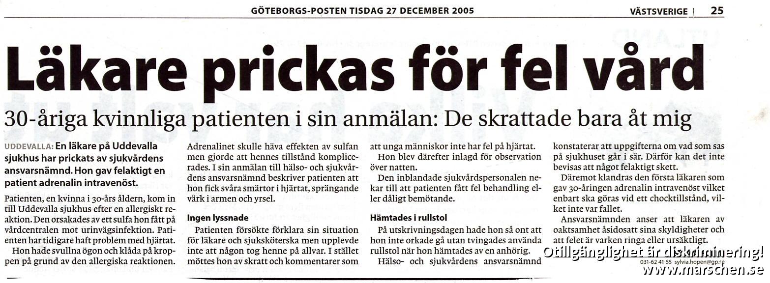 På grund av mitt funktionshinder fick jag mycket sämre vård. (Uppföljning 2008-12-30) Läs hela anmälan om NÄL …